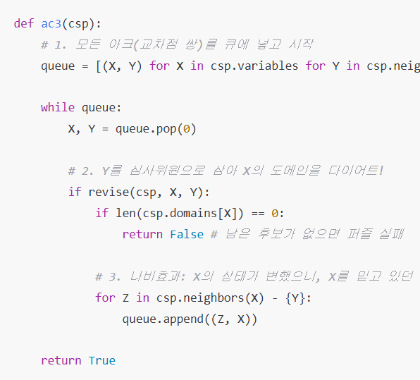 이때 탐색 공간을 극적으로 압축하여 백트래킹 엔진에 날개를 달아주는 전처리 알고리즘이 있습니다. 바로 AC-3 (Arc Consistency 3) 알고리즘입니다. 오늘은 이 알고리즘이 어떻게 불가능한 오답들을 미리 가지치기하는지, 그 직관적인 원리를 파헤쳐 보겠습니다.